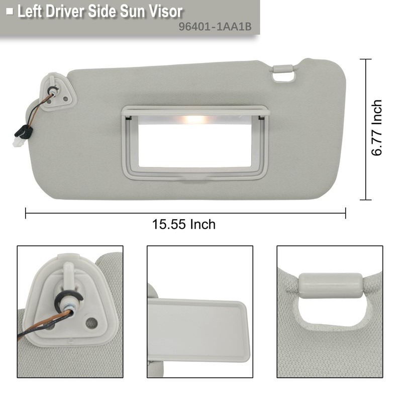 NHILES Driver & Passenger Side Sun Visor Fits for Nissan Murano 2009 2010 2011 2012 2013 2014 Replacement sun shade # 96401-1AA1B (Gray)