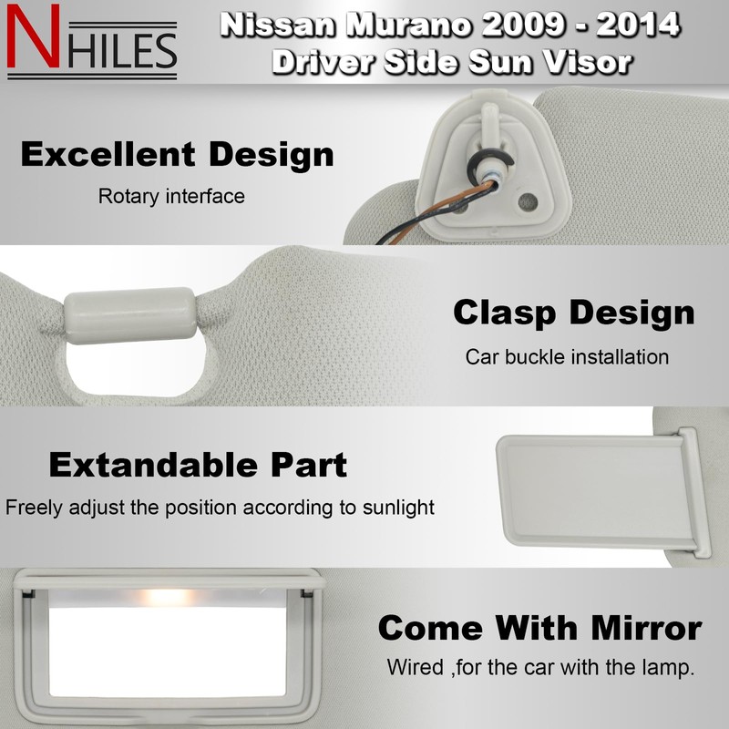 - Compatible with:Sun visor For Nissan Murano 2009 2010 2011 2012 2013 2014 . Please check if your vehicle year is applicable before purchasing to confirm that it meets your requirements.