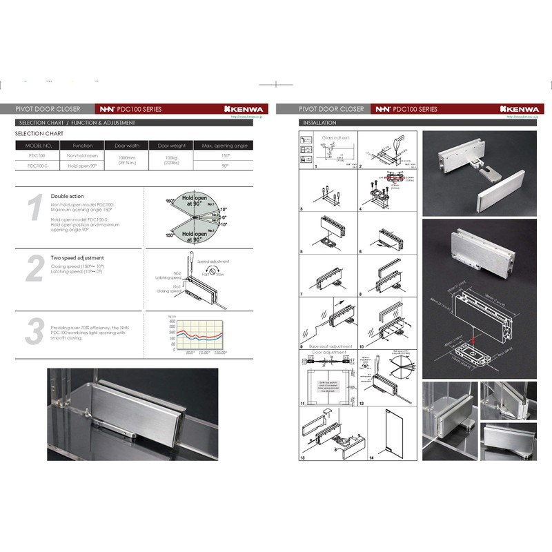 The NHN PDC100 pivot closer, is the first in the Flagship Range from NHN's next generation of hidden door closers. Incorporating the latest cam type technology, the NHN PDC100 pivot closer offers easy opening with increased efficiency on the closing torque. The closing speed is easily adjusted via two independent adjustment valves. Available with or without hold open at 90degree. Narrow style with high performance.