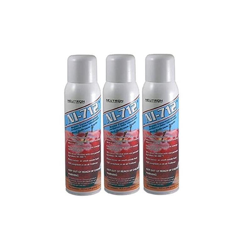 - Eco-friendly NI-712 Super Concentrated Odor Eliminators use compressed air to dispense a super fine mist. Contains a unique odor-neutralizing ingredient specifically formulated to work fast eliminating your worst airborne odors in seconds. This product contains no hydrocarbon propellants and can be sprayed from any position – even upside down. One spray keeps an average 10x10x10 room odor-free for up to eight hours.