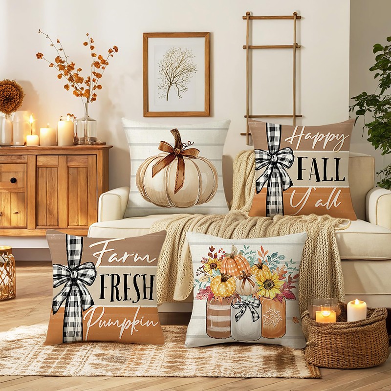 - Fall Throw Pillow Covers: These throw pillow covers are crafted with a mix of charming fall patterns to set against warm and inviting color schemes to bring a touch of seasonal beauty to your home