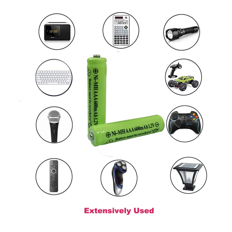 - 1.2-volt 600mAh AAA Ni-MH rechargeable batteries are Ideal for fast discharge applications / solar lights ,RC/AC remote etc