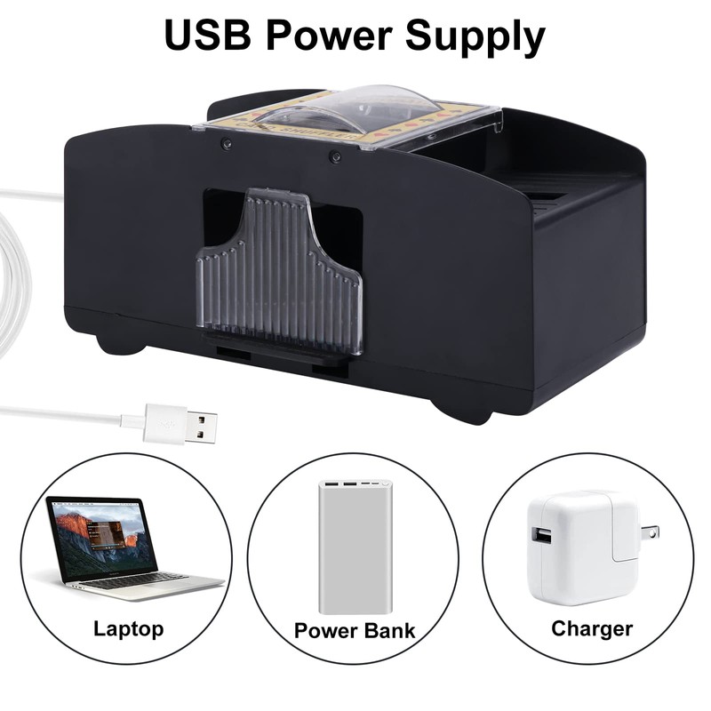 - USB/BATTERY OPERATED – The cards shuffler can be powered by USB (need to be charged all the time to shuffle, without the power storage function), it can be used with power banks more convenient, to help you solve the battery problem of the traditional shuffler. You can also use 4 AA batteries (not included) to supply power, play cards(not included) with friends anytime, anywhere.