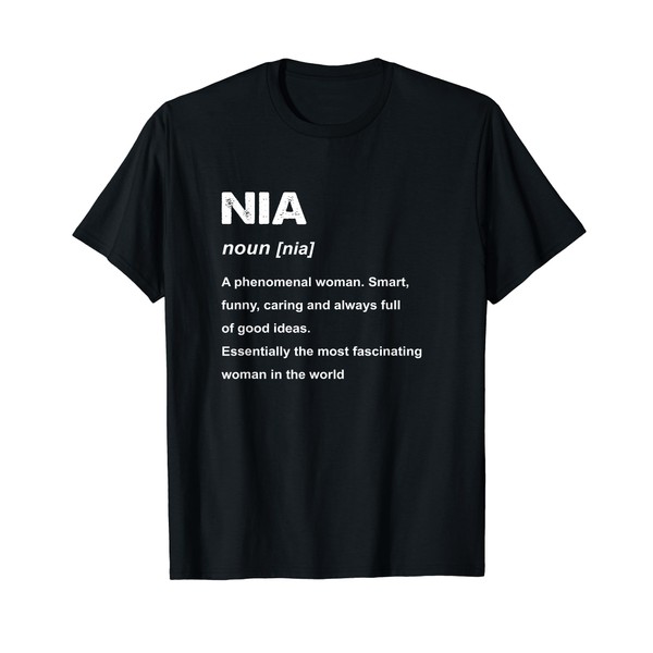 - This Nia Shirt / Design is the perfect apparel for anyone named Nia. Personalized, Custom name shirt for Women. Funny Nia Name Definition apparel.