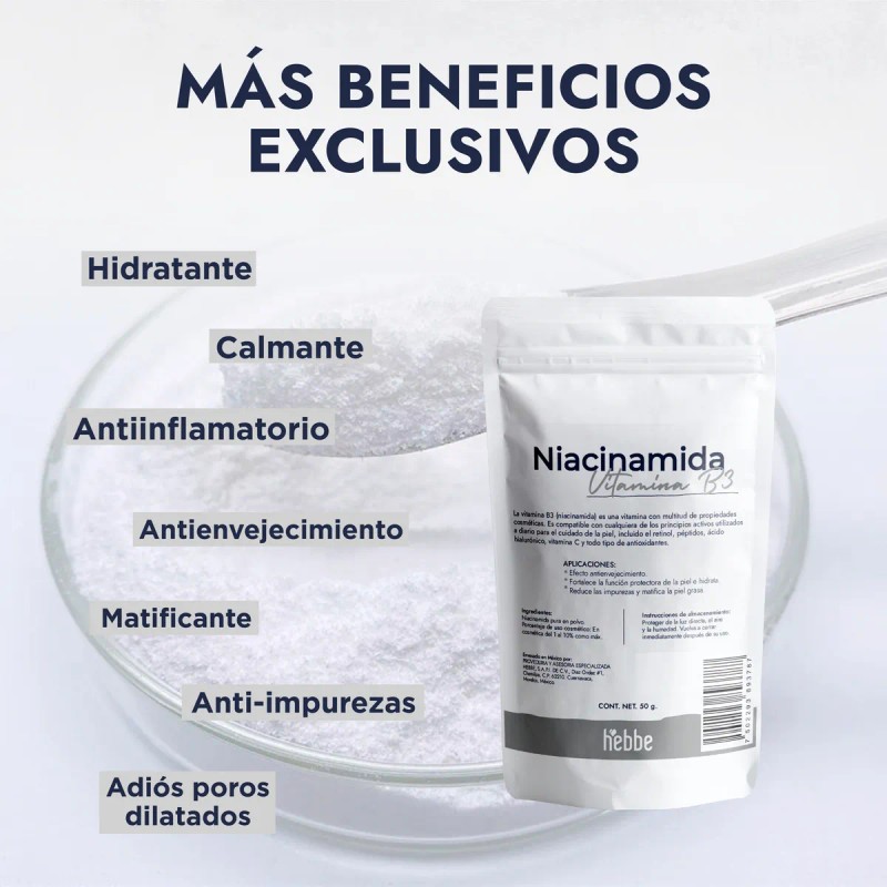 - Componentes: Niacinamida pura al 100%.