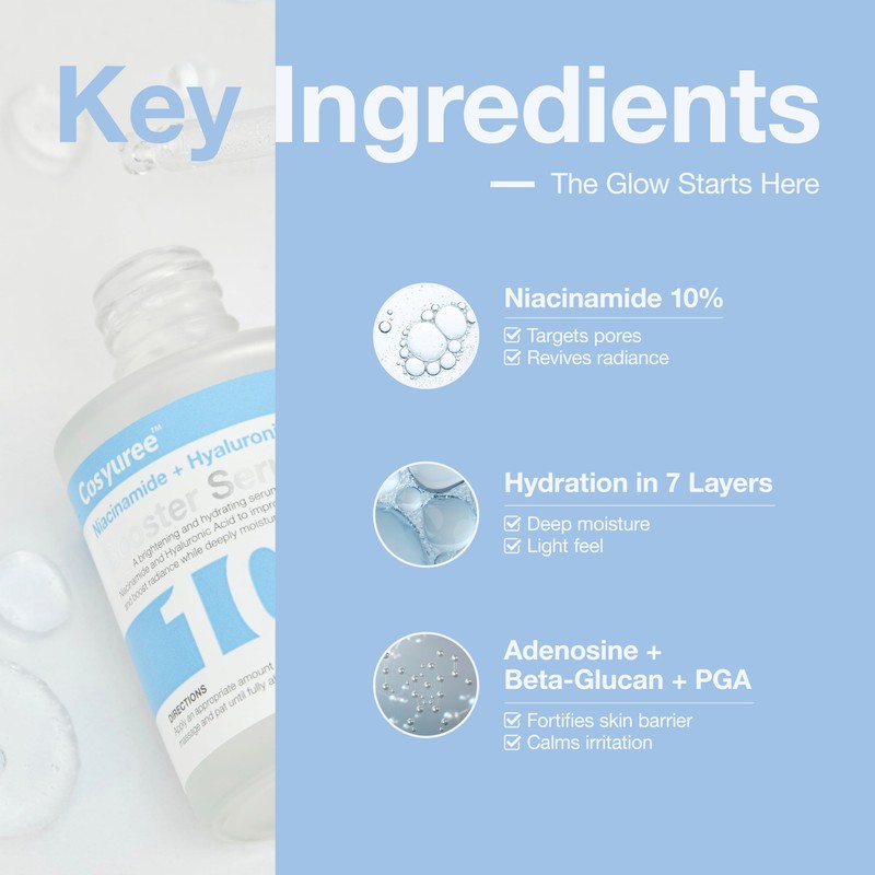 Niacinamide Hyaluronic Acid Booster Serum by Cosyuree โ 100,000ppm Brightening & Hydrating Formula, Even Toning, Radiance-Boosting for Plumper, Smoother Skin, Fragrance-Free, 30ml (1.01 fl oz)