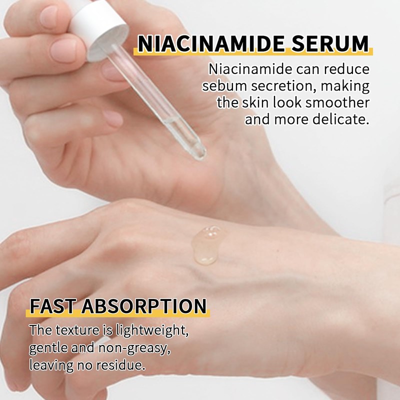 - Quick Absorption: Niacinamide serum has a light texture, gentle and non-irritating, can be quickly absorbed without leaving any residue, and is suitable for all skin types
