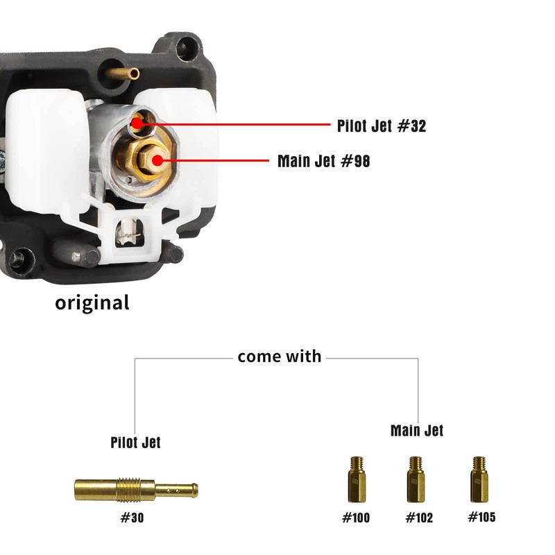 - ★Package including:PWK 24mm carburetor *1, #100/#102/#105 main jet*3, #30 slow jet*1 , Carburetor installation manual*1.