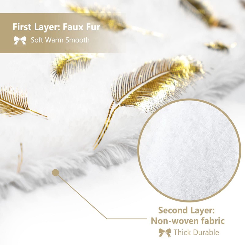 NIBESSER White Christmas Tree Skirt, 48 inches Faux Fur Tree Skirt Sequin Tree Carpet Mat with Gold Feathers Plush Tree Base Cover for Christmas Decorations New Year Party Holiday Xmas Ornaments