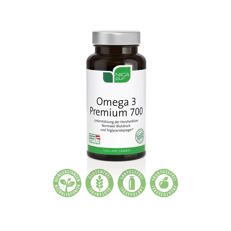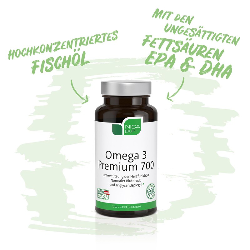NICApur Omega 3 Premium 700 - Omega-3-Fettsäuren EPA + DHA - 60 Kapseln