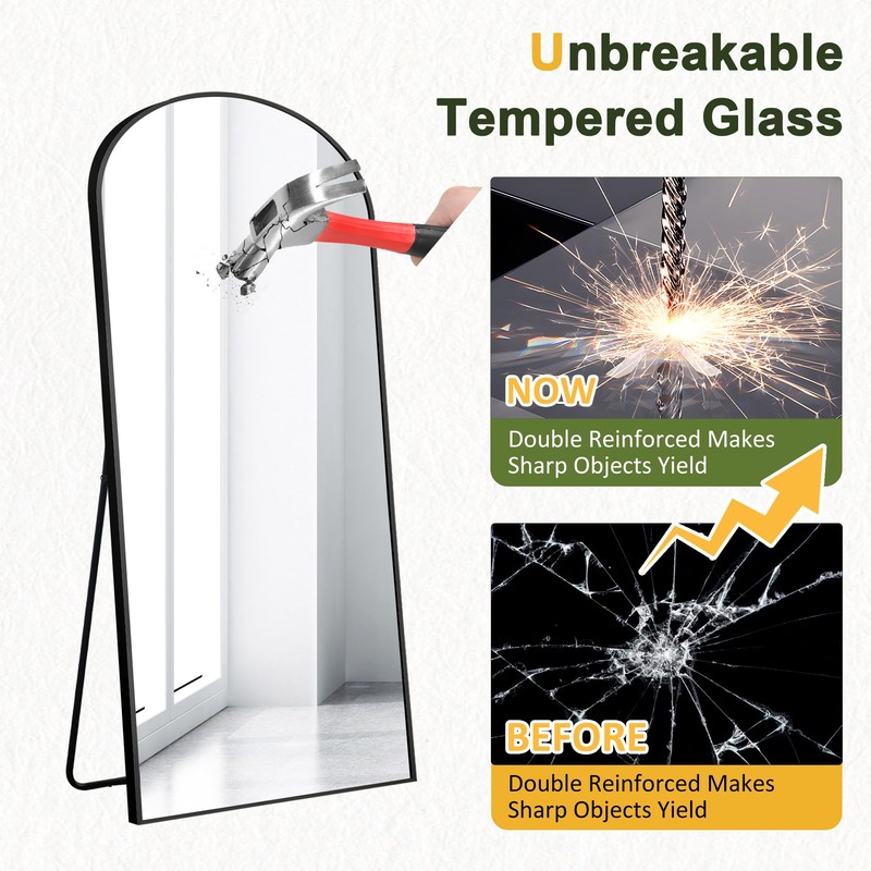 - High-quality & Safety AssuranceCrafted with premium-quality glass, this floor mirror ensures high-definition real reflections. Besides, this mirror features tempered glass and shatter-proof film, reducing the risk of breakage and minimizing the potential for injury from shattered glass.