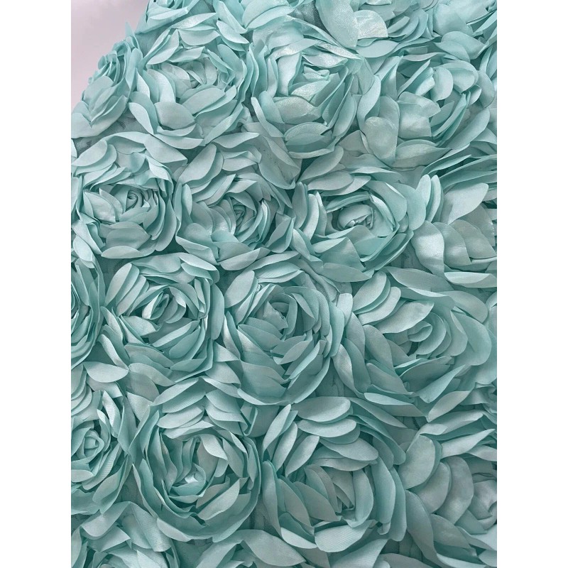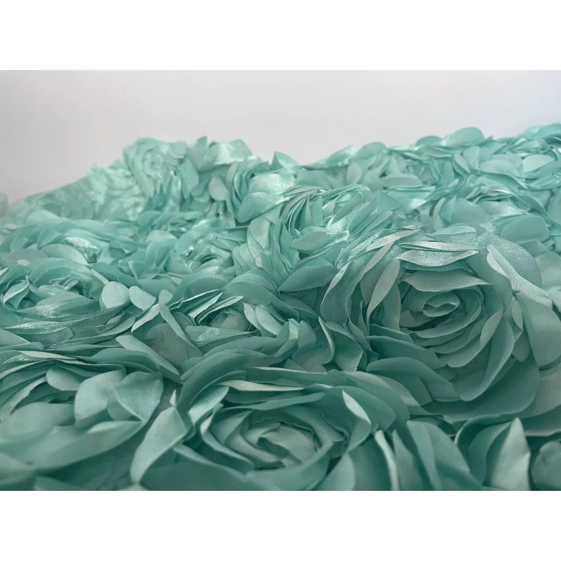 3D Rose Satin Rossette on Mesh Fabric by the yard Beautiful fabric on aqua color for any of your sewing projects, creations, and Arts & Crafts.