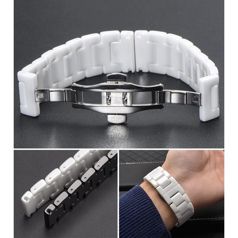 - ❤ 【Full Ceramic Watch Band】: Fine workmanship of zirconia ceramic, Polished surface brings you a strong sense of high-class quality and elegance, has better breathability and prevents you from allergy,waterproof, high temperature, However, the real ceramic is fragile, During the wearing process, be careful Slammed hard, hit or fall.Butterfly Clasp:Fashion and Safety.Quick release design: just install and detach the band by hand, fit for both men and women.