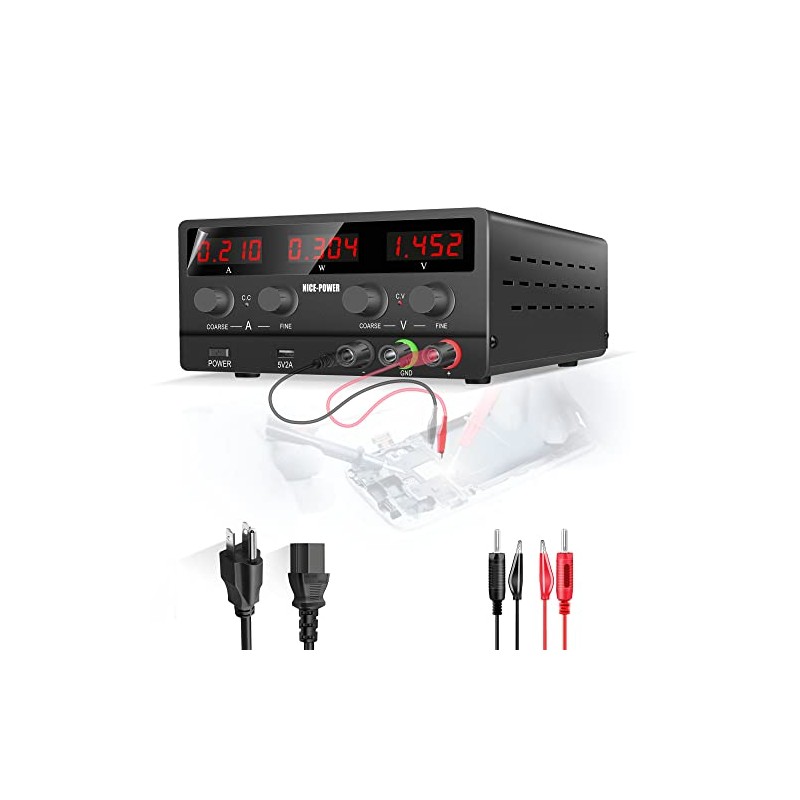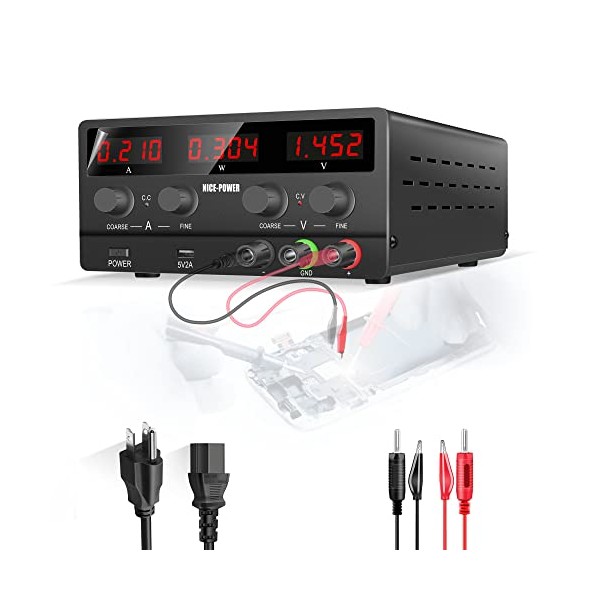 NICE-POWER DC Power Supply Variable: 30V 10A Adjustable Switching Regulated High Precision 4-Digits LED Display 5V/2A USB Port Output & Input Power Cord Bench Lab Power Supplies