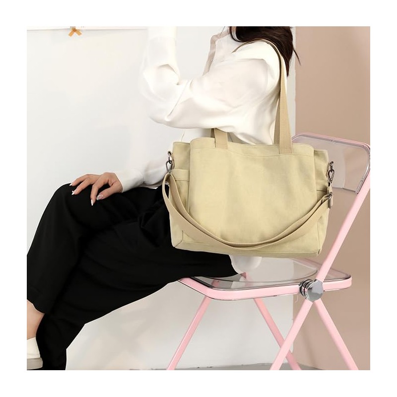 - (Large Capacity and Easy to Use) Large capacity allows you to use it with anything, and it has a divider for convenient storage. It can neatly fit your laptop, A4 booklet, tablet, wallet, smartphone, power bank, pouch, etc. Canvas canvas material makes this tote bag lightweight, durable and very easy to use