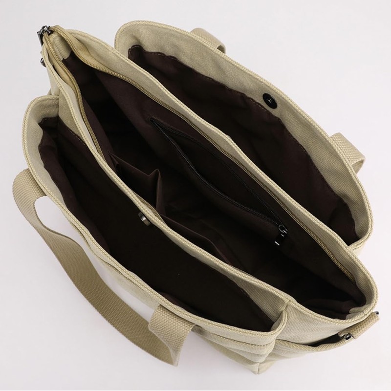 NICE SELECTION Tote Bag, Canvas, Canvas, Large Capacity, Men's, Women's, Compatible with A4, Crossbody Fit, Durable, Lightweight, Outdoor, Dividers, Removable Belt, 2-Way, Khaki