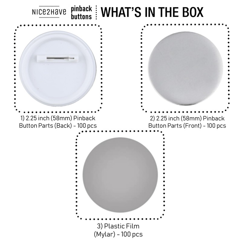 Nice2Have 100 Juegos de Diezas de Botón Pinback de 58 mm (2.25 pulgadas) - Suministros de Pines Para Máquina de Hacer Pines