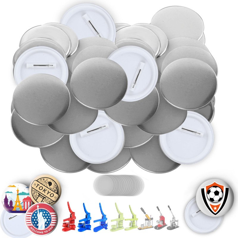 - PERSONALIZA TUS BOTONES DE PINBACK 58mm: Este juego es perfecto para hacer botones de pinback personalizados. El juego contiene 100 piezas de botones pinback de 58 mm, lo que le permite hacer grandes regalos para su familia y amigos con su máquina para hacer botones