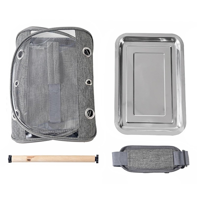 Nicear Faltbare Reisetasche FüR VogelkäFige Mit Stehsitzstange Edelstahltablett Und BelüFtetem Design Leichte Haustiertasche FüR Papageien Sittiche Kleintiere (Grau)