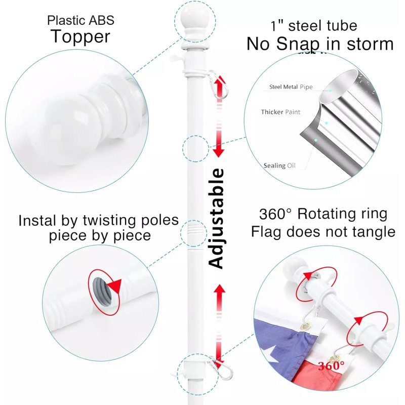 Nicecho Flagpole silver rod 5' ft Long + bracket fit 3', 4', 5' flag size for house yard