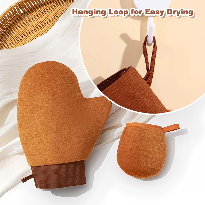 ✔ Dual-Size Design – Includes 1 large mitt (21x16cm) for quick full-body application and 1 small mitt (8x10cm) for elbows, knees, and hard-to-reach areas.