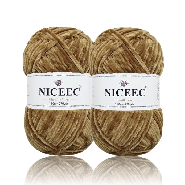 NICEEC 2 Skeins Soft Chenille Yarn Blanket Yarn for Knitting Fancy Yarn for Crochet Weaving DIY Craft Total Length 2×255m (2×279yds, 2×150g)_Dark Brown