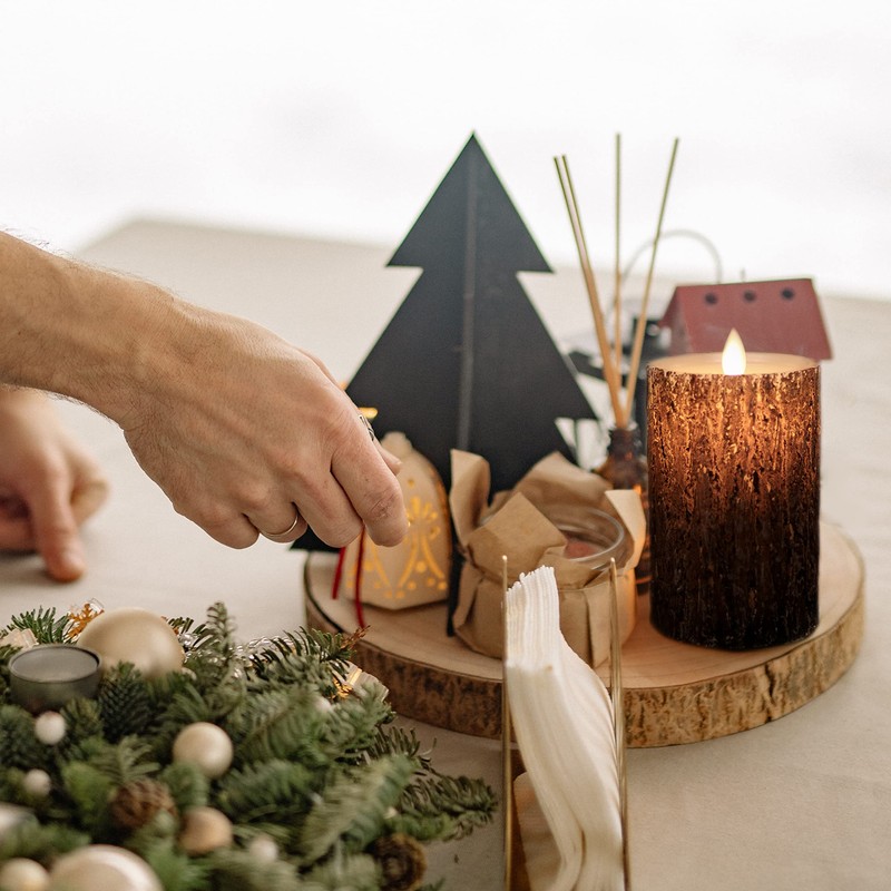 - |Realistic Electric Led Candle Covered With Pine Bark| - What makes our flameless candle look real? First, Pine bark cover, which offers you a real visual sense of real pine tree as much as possible, makes it pretty vintage and ritual and enables you to feel the ambience of nature. Second, it is applied with the flame simulation technology that the LED flameless candles have the flickering mode and moving wick.