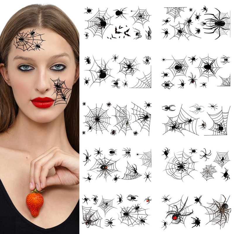 - Abundant Variety of Halloween Spider Web Tattoos: 8 sheets of COKTAK Halloween temporary tattoos include over 500 intricate designs for men, women, and kids, sized 7.4"x3.5" (19x9.6CM) for versatile Halloween makeup