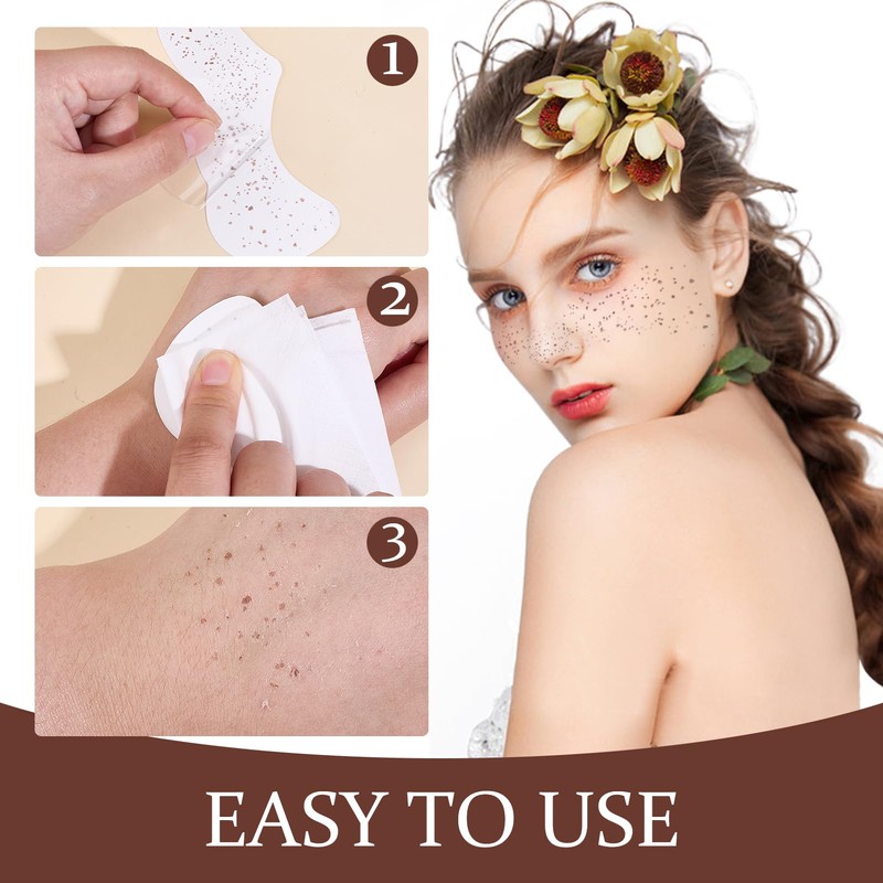 - GLITZER-SOMMERSPROSSEN-GESICHTSTATTOO:Dieses Set enthält 24 Stück goldglitzernde Sommersprossen-Tattoos, Bietet reichlich Patches, um alle Ihre Make-up-Bedürfnisse zu erfüllen. Diese Patches fügen sich nahtlos in Ihre tägliche Make-up-Routine ein und verleihen Ihrem Gesamtlook eine schillernde Note