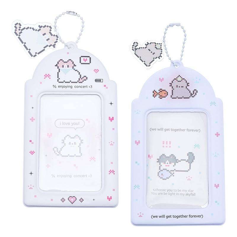 NICENEEDED 2PCS Kpop Photocard Holder 14 X 7.5CM Cute Cat Keychain Y2K PhotoCard Holders ID Bus Card Accessories