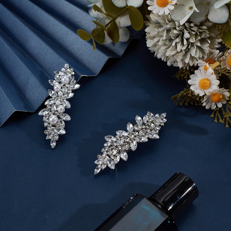 - Metal Material: Crafted from quality metal material, these silver French rhinestone barrettes are not only beautiful but also strong and corrosion-resistant, ensuring they will securely hold your hair in place without slipping