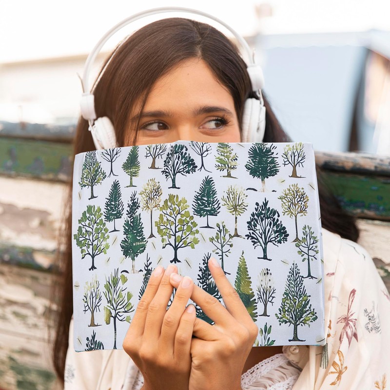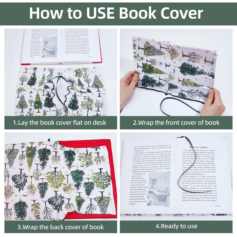 - TREE THEME BOOK PROTECTOR: This stretchable book sleeve has designed as a fresh green tree pattern, which printed clearly, it looks delicate and beautiful, and is easy to draw attention to, so you can find the book you need in the first place