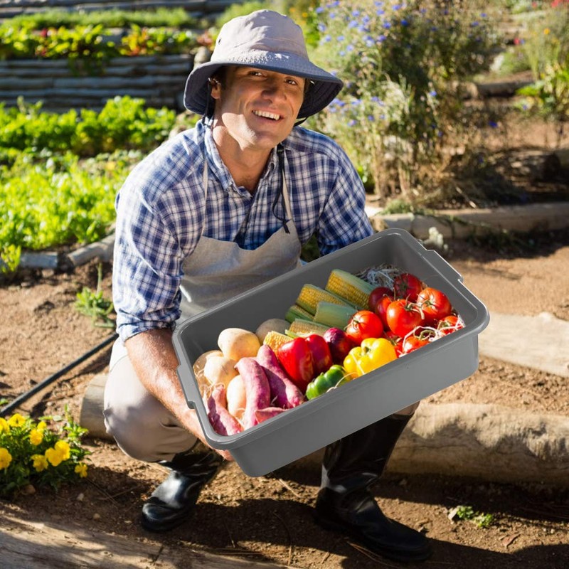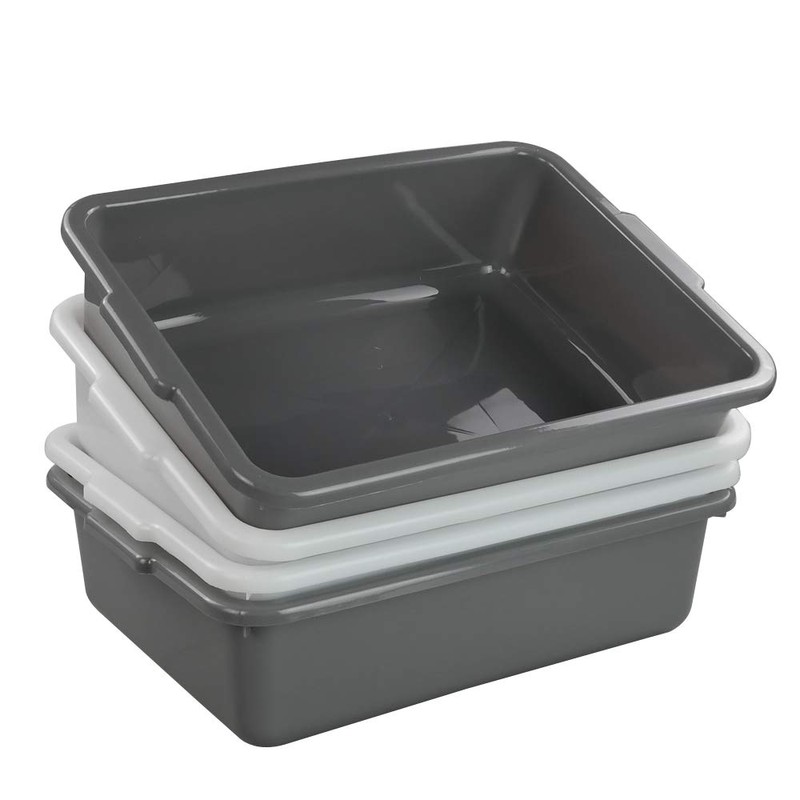 Nicesh 3-Pack 13 L Plastic Commercial Bus Tub, Gray Bus Box with Lid