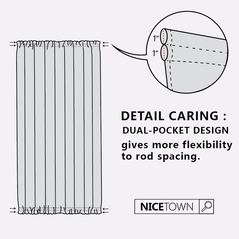- Ready made: Package includes 2 panels NICETOWN French Door Blackout Curtains, each measuring 25" wide by 40" long, and two tiebacks for a bonus. Dual rod pockets design at the top and bottom (each 1" in diameter) ensures easy installation.