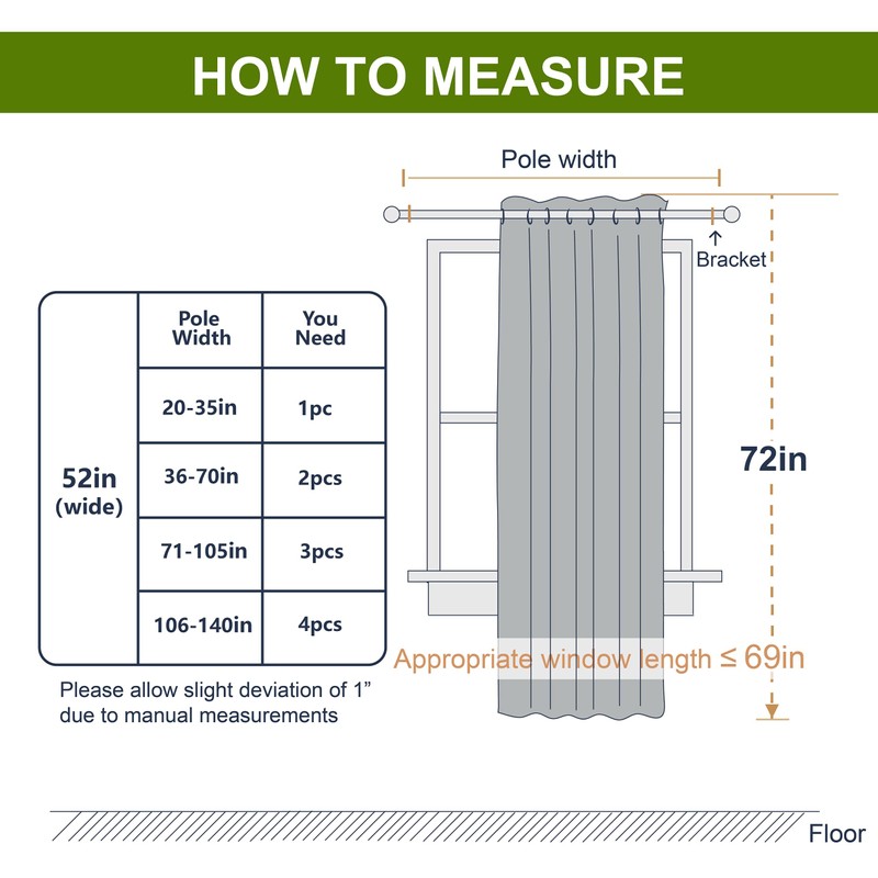 - ELEGANT DESIGN: 1-panel BLACKOUT CURTAIN per package. Each Curtain Panel measures 52" wide x 72" long. The NICETOWN drapery is constructed with gorgeous matte silver grommets, fitting the curtain rod of your choice up to 1.6 inches in diameter, making the curtains easy to install and slide.