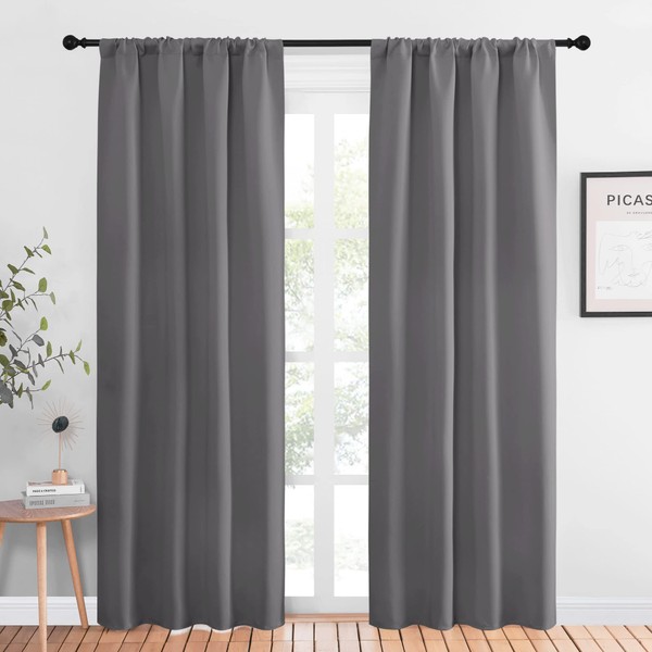 NICETOWN Blackout Curtains 84 for Office - 3 Pass Microfiber Noise Reducing Thermal Insulated Solid Rod Pocket Blackout Window Panels/Drapes (2 Panels, 42 x 84 Inch, Gray)