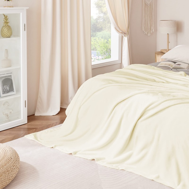 NICETOWN Fleece Blanket Twin White 60" x 80", Super Soft Lightweight Microfiber Flannel Blankets for Travel Camping Chair and Sofa, Cozy Luxury Plush Fuzzy Bed Blankets