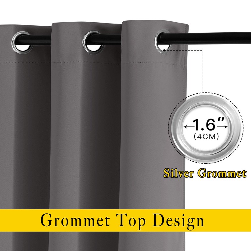 - Elegant Design: 2 panels per package. Each Blackout Curtain measures 52" wide x 84" long. The design of silver grommet (1.6-inch inner diameter) creates casual elegance for your house, which makes the curtains easy to install and slide.