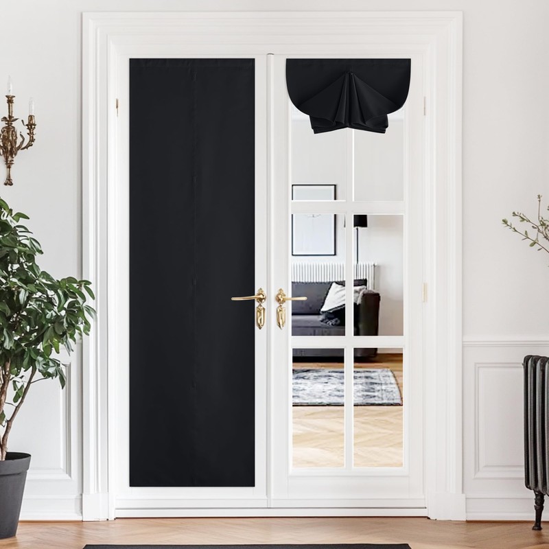 NICETOWN Magnetic Blackout Door Curtains for Bedroom, Portable Window Blinds, No Drill French Door Blinds for Window Covering, Adjustable Roll Up Curtains for Front Patio Door, 1 Pc, 30W x 72L, Black