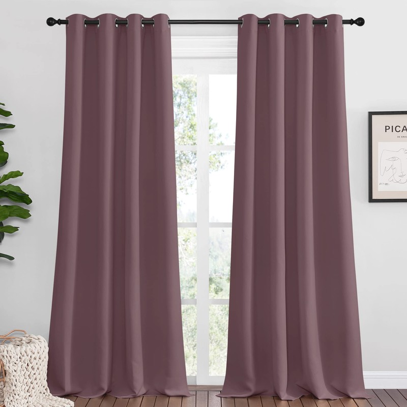 NICETOWN Blackout Curtains are so much more than just bits and pieces of fabric that are sewn together to prevent sunlight from entering your home, they go beyond that mundane function and provide additional benefits that do not meet the eye instantly. Light Blocking Energy Savers. Having the heavy, multi-layered microfiber blackout window curtains or drapes can make a world of a difference in reducing the amount of light that comes in from outside, which has green-conscious consumers excited about investing them as energy-efficient window treatments. A home insulated and remains warmer in wintertime relieves the strain on home heating and reduces 25 percent energy budget at most. Sleep Soother n Noise Buffer. It's hard to get babies to take a rest during the day when the sun is streaming brightly through a bedroom window. Blackout curtains encourage the best possible sleep and most comfortable setting for day sleepers and the ones who have trouble falling asleep, by automatically darkening and lowering noise levels. Absolute Privacy n Relax. Not only that but also make your resting zone truly blissful. They would be perfect for any home theater and supply you with the enjoyment of watching TV in real darkness.If you are looking for great and cost-effective ways of re-inventing the look of your home, NICETOWN readymade curtains would be the game changer in your shopping cart. They are crafted for the topmost and luxury, coming with the strong grommet ring top for easy installation and smooth sliding over a rod. Each curtain panel is carefully ironed and ready to serve as your window dressing.What color do you like?