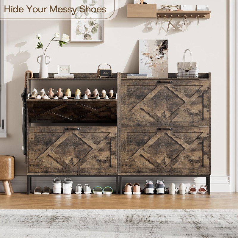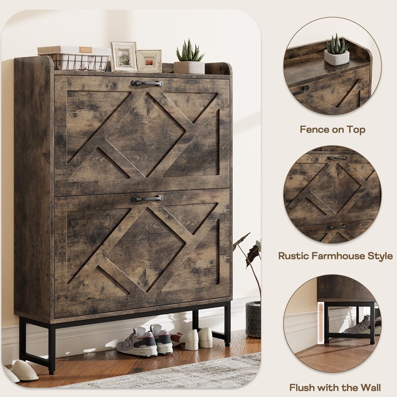 Nicetree Shoe Cabinet Storage for Entryway, Shoe Cabinet with 2 Flip Drawers, Narrow Farmhouse Shoe Rack Cabinet,Shoe Organizer for Entryway, Hallway, Toasted Brown