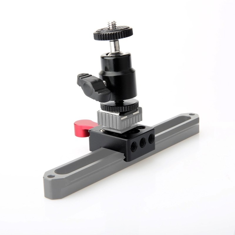- (Comes with nut clap) This product comes with a nut clamp. There are 1/4"-20 and 3/8"-16 screw holes on the top of the plate for mounting small videos, monitors and wireless receivers. In addition, you can attach camera accessories such as LED lights, microphones, cold shoes, etc. This locking clamp applies to most NATO rails in the industry. The rail width can be adjusted to 0.8 inches (20.5 mm) depending on the shooting conditions, and other dimensions are available. Nut Rail Clamp with Locking Lever for Quick Lock and Release