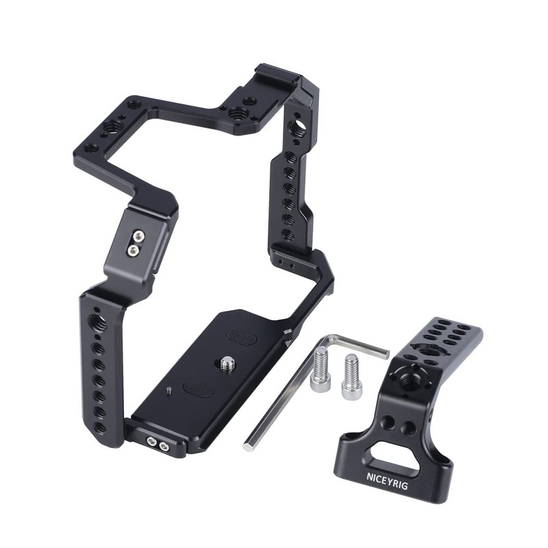 - Top Handle Secured tightly on the top via 1/4''-20 screws. Add plenty of 1/4''-20 and locating holes for additional attachments, such as articulating arm, monitor mount, flash light, microphone, etc.