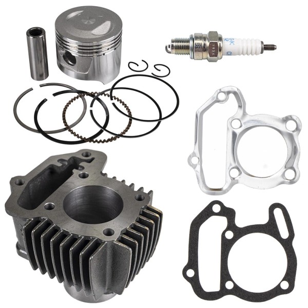 • Items Included: Cylinder, Piston, Piston Rings, Wristpin, Circlips (2), Head Gasket, Base Gasket, Spark Plug