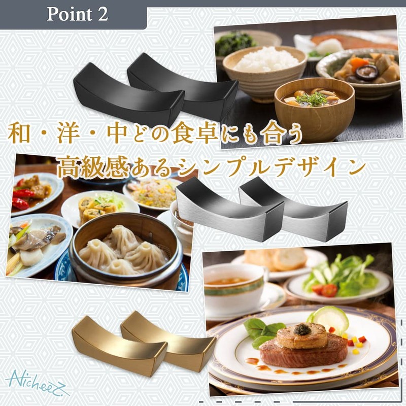 Set of 5 Stainless Steel Chopsticks Rest - This set of 5 chopstick rests made from stainless steel material that is corrosion resistant, durable, and rust-resistant. No more worrying about mold like wood or chipping like ceramic. (Suitable for All Japanese and Western Tables) The curved center shape allows it to be used with a variety of cutlery such as spoons, forks, knives, and more. The simple design goes well with any Japanese and Western dining table. 【For Restaurants and Drinks】Lightweight and durable, easy to clean and maintain. It will not break even if dropped on the floor, so it is recommended not only for home, but also for restaurants and restaurants. [Product Details] Stainless steel chopstick rest; Number of sets: 5 pieces; Material: Stainless steel; Size: Width approx. 2.2 inches (5.7 cm); Height approx. 0.7 inches (1.8 cm); Weight: approx. 0.8 oz (23 g); Color: Gold
