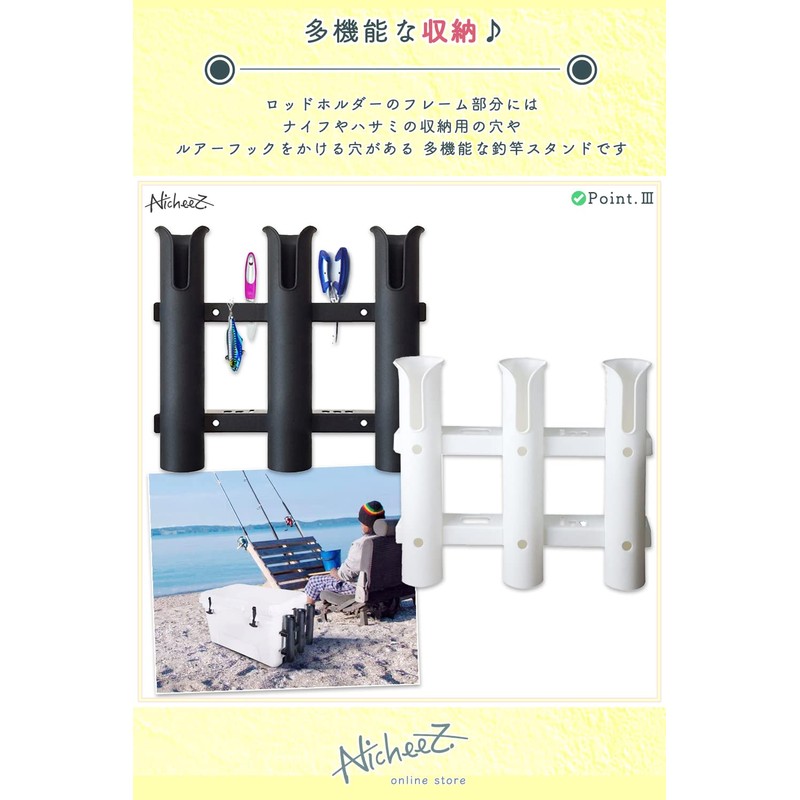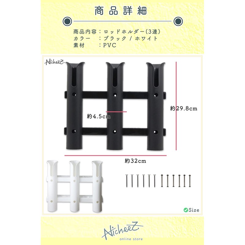 - (3 Rod Holder) This 3-rod holder is great for fishing. Made of durable PVC that won't break or deteriorate. Easy to install with screws anywhere