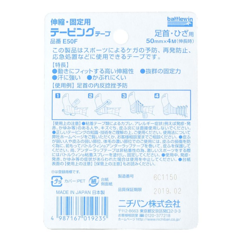 Nichiban Battlewin E50F Taping Tape, Elastic Beige Type, 2.0 inches x 13.1 ft (50 mm x 4 m) (Extended)