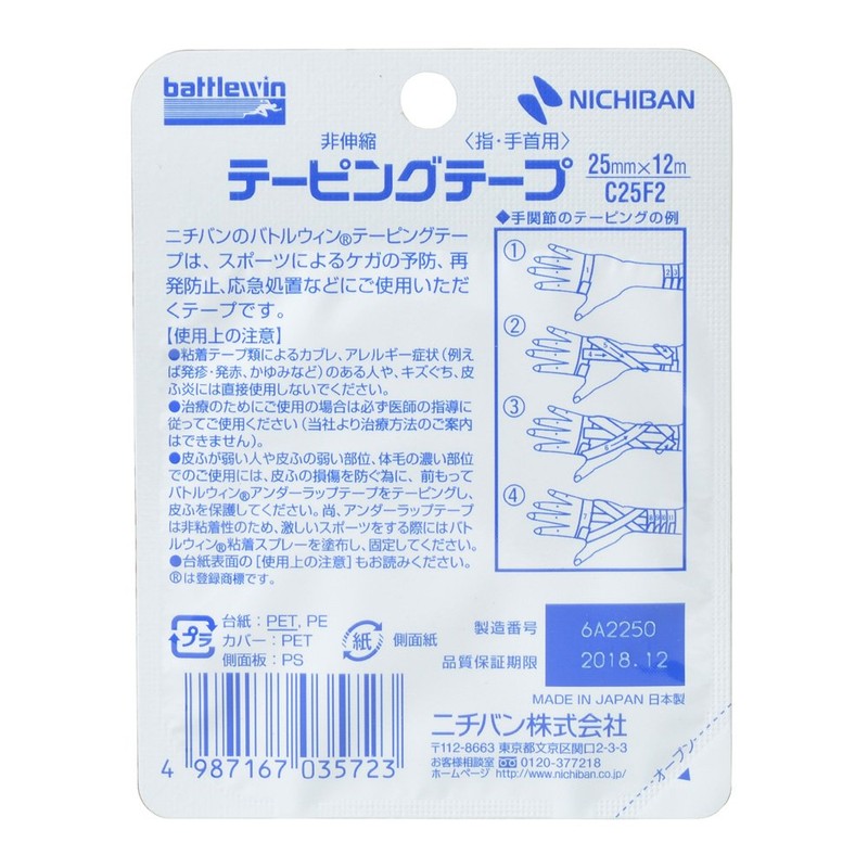 Nichiban C25F2 Battlewin Taping, Non-Elastic, 1.0 inches (25 mm) x 46.6 ft (12 m)