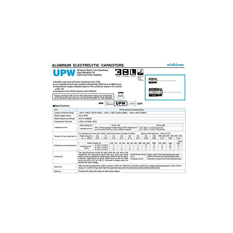 Nichicon UPW2E471MRD 470uf 250v Capacitor 105c High Temp, Radial Leads