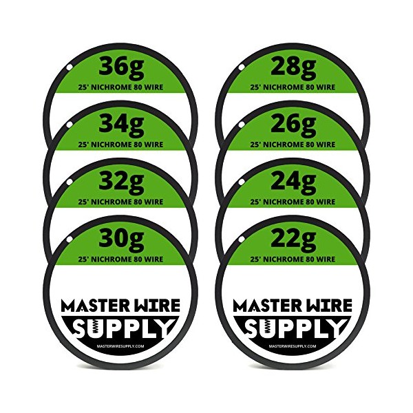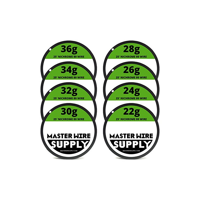 • 1 - 25 ft spool of each 22, 24, 26, 28, 30, 32, 34, and 36 gauge Nichrome 80 Wire